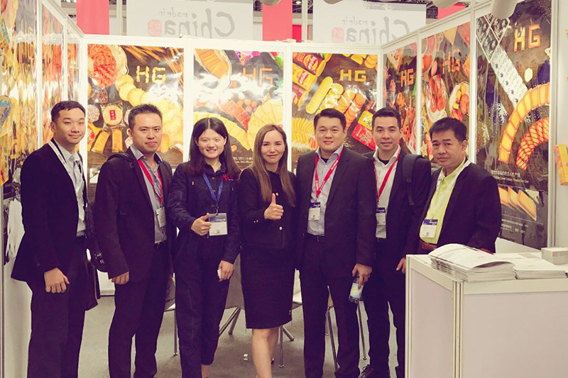 Компания HG была удостоена чести принять участие в качестве экспонента, представив широкий спектр передовых технологий переработки пищевых продуктов. Экспонаты включали гибридную линию производства картофеля фри, полностью автоматическую линию для пирожных, комплексные линии для производства рулетов и шоколадных пирогов, а также линии для производства мягкого и твердого печенья. Экспозиция быстро привлекла живой интерес посетителей.